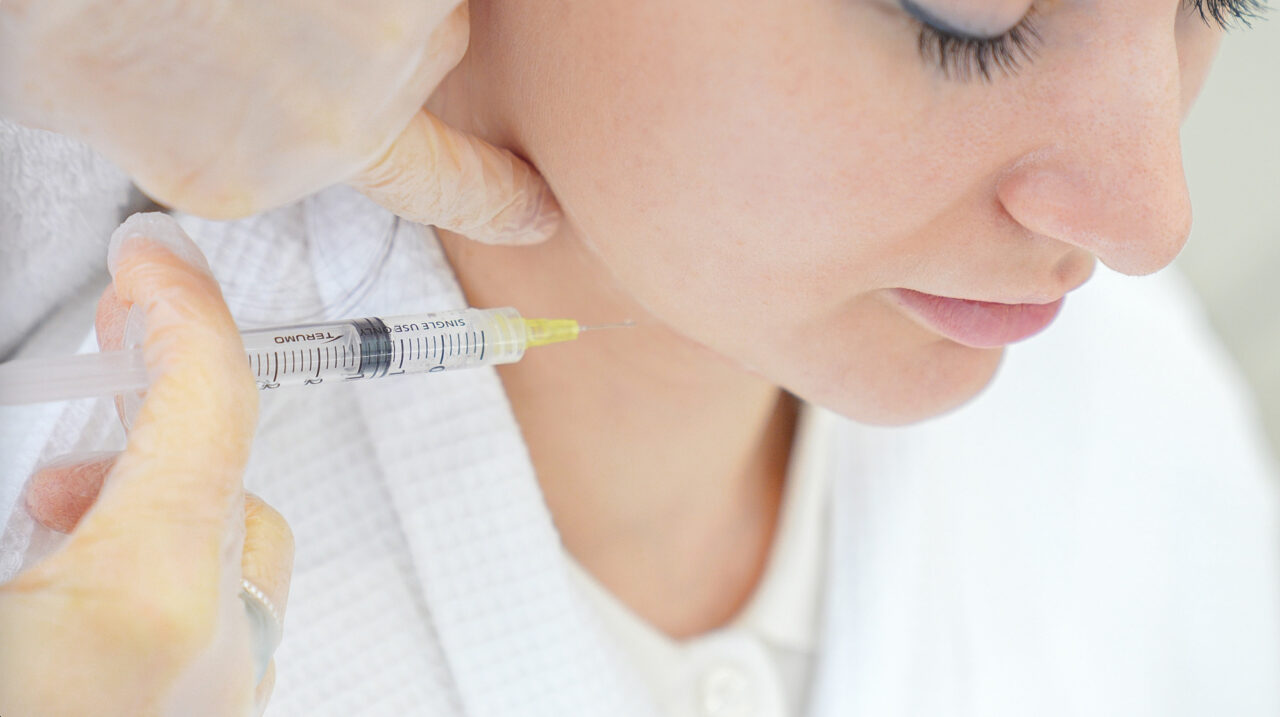 تحضير المنطقة: تنظيف الجلد وتطبيق كريم مخدر لتقليل الإحساس بالحقن.