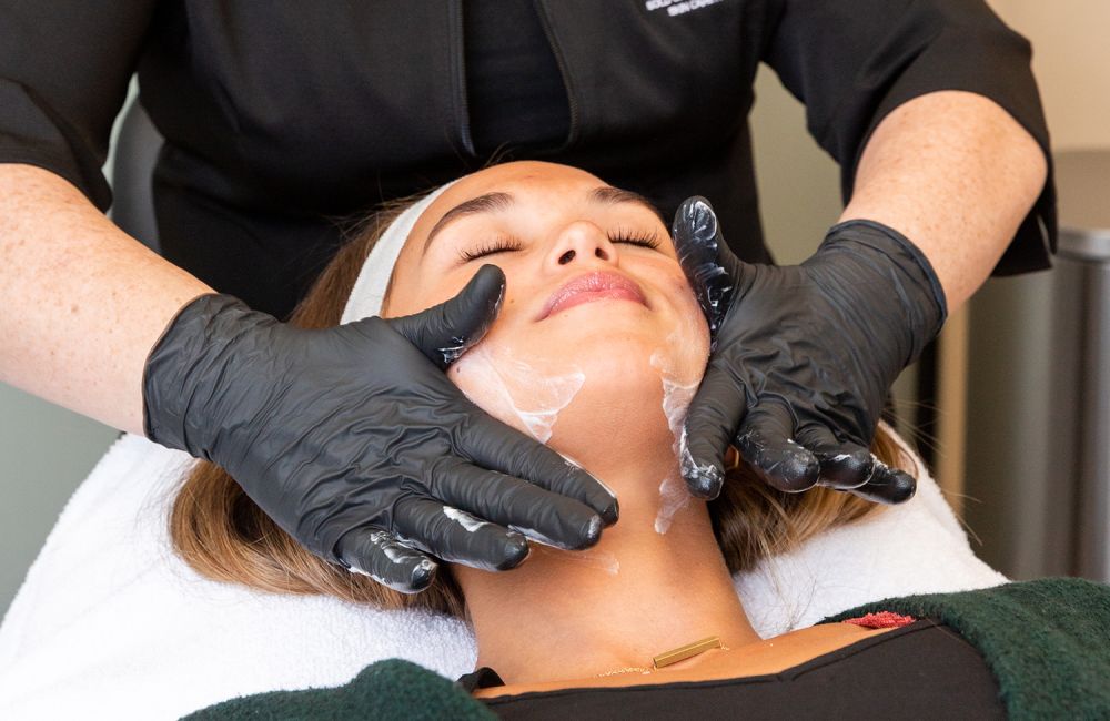 1. تقييم نوع البشرة: تُفحص البشرة سريريًا لتحديد نوعها (دهنية، جافة، مختلطة، حساسة) والمشكلات المستهدفة.